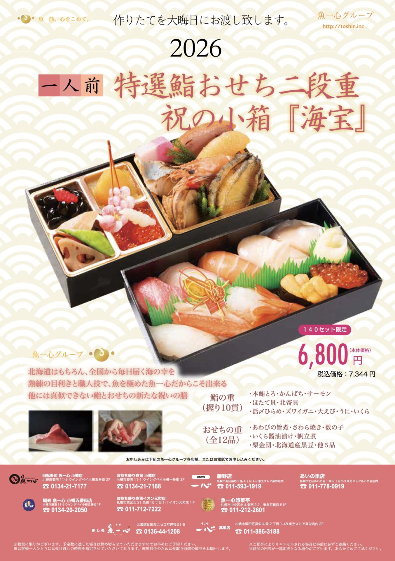 毎年ご好評いただいておりますおせちご予約の受付を開始しております。数に限りがございますのでお早めのご予約をお願いいたします。※ご予約は店頭のみとさせていただいておりますのでご注意ください。